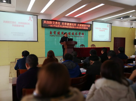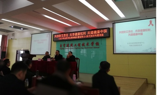在“12.1世界艾滋病日”即将来临之际,11月22日我局防艾工作领导小组围绕今年活动主题 “共担防艾责任,共享健康权力,共建健康中国”,邀请市疾病预防控制中心防艾专家刘敏主任到自贡建筑工程技术学校开展防艾专题讲座,市卫生计生委疾控科杨永钊科长主持讲座。