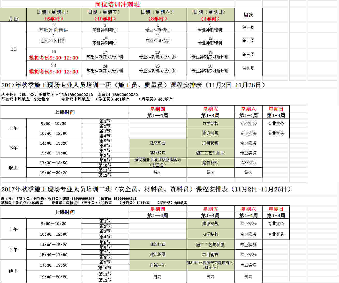 2017年秋季岗位培训冲刺班课程表