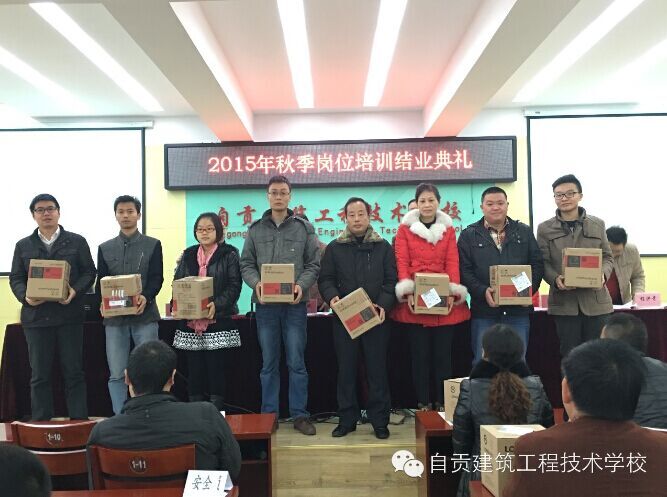 2015年12月2日上午9:00在学校五楼报告厅举行了2015年秋季岗位培训表彰暨结业典礼。自贡建筑工程技术学校校长王斌、自贡市规建局人事科科长吕智、自贡建筑工程技术学校办公室主任罗莉、自贡建筑工程技术学校技能鉴定科科长熊恒立参加了会议。结业典礼由自贡建筑工程技术学校技能鉴定科科长熊恒立主持。