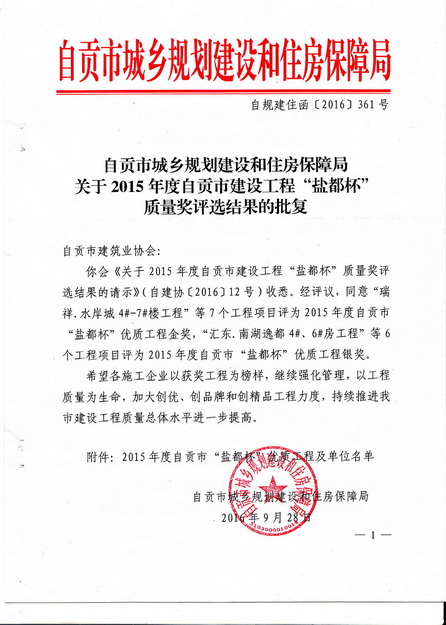 2015年度自贡市“盐都杯”优质工程及单位名单