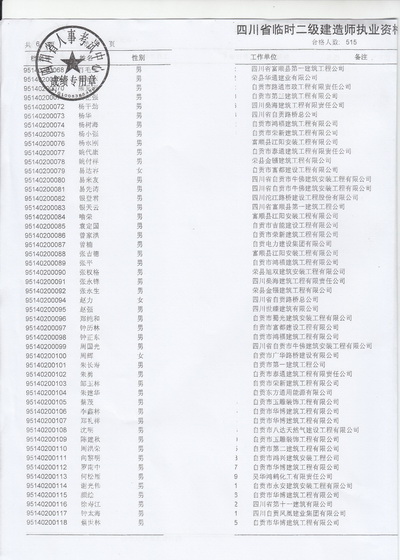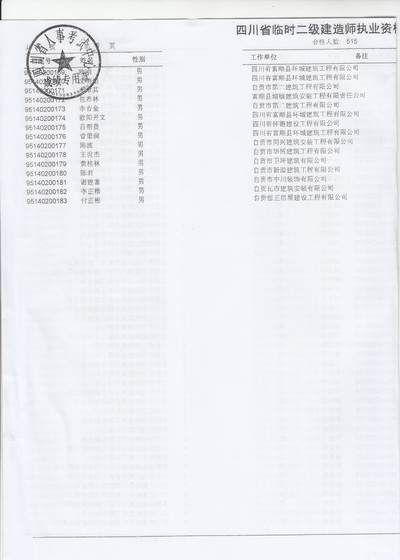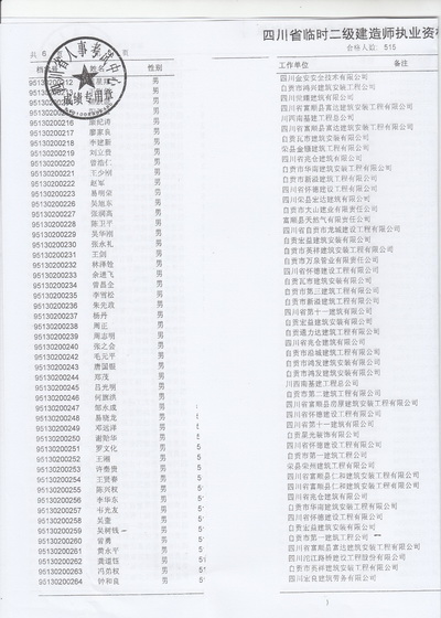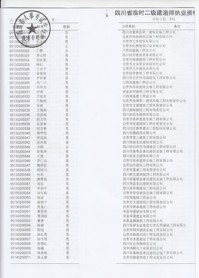 关于王永等515名同志参加四川省二建建造师临时执业证书人员资格考试结果的通知